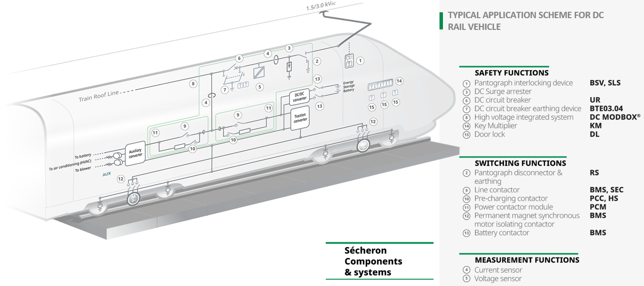 – Electrical safety solutions: Components protect high-voltage DC circuits from overcurrents, short circuits, surge voltages, and unsafe catenary voltages, ensuring maintenance technician safety.